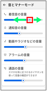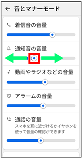 を右にドラッグすると音量が大きく、左にドラッグすると音量が小さくなります。