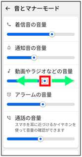 | 動画やラジオなどの音量 | 動画やラジオなどの音量を設定します。 | |