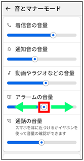| アラームの音量 | アラーム音の音量を設定します。 | |