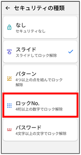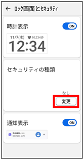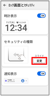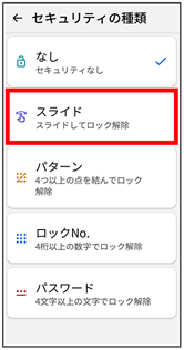 - 変更前の画面ロックの解除方法がなしまたはスライド以外のときは、ロックを解除してください。