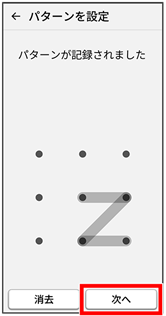 - パターンを指でなぞって画面ロックを解除するように設定する