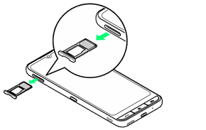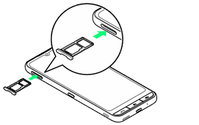 • ↓USIMカード/SDカードトレイを本機に差し込み、奥までまっすぐに押し込む