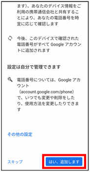 Google アカウントのログインが完了します。