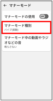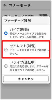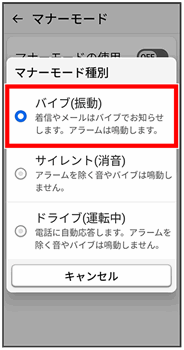 アラームを除く、着信やメールをバイブ(振動)でお知らせします。
