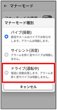 アラームを除く、音やバイブ(振動)によるお知らせをしません。電話をかけてきた相手には自動応答します。