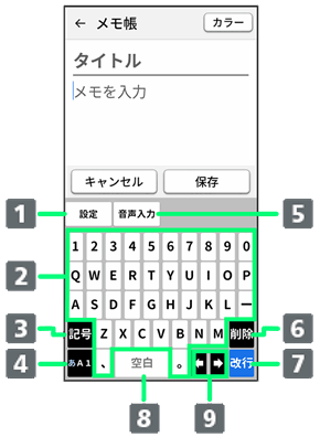 おもなソフトウェアキーボードには、携帯電話のキーボードのようなレイアウトの「テンキー」、パソコンのようなレイアウトの「QWERTY」があります。