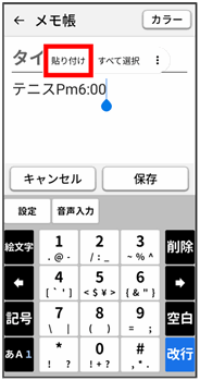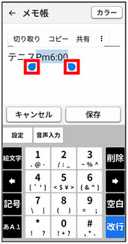 文字入力画面で入力済みの文字や、ウェブサイトの文字をダブルタップ/ロングタッチすると、文字列がハイライト表示されて編集メニューが表示されます。表示される編集メニューの項目は、アプリによって異なります。