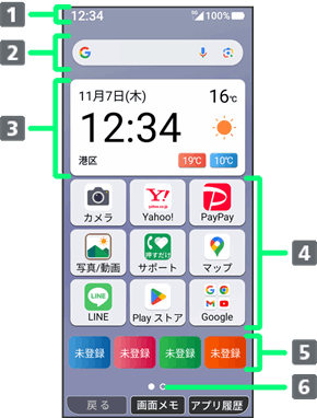 | ホーム画面の現在の位置を示します。 |