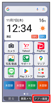 最近使用したアプリの履歴が表示されます。