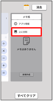 あらかじめ、マルチウインドウの画面上部に表示したいアプリを起動しておいてください。ここでは、