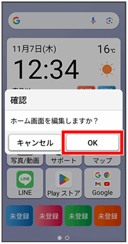 ホーム画面の設定画面が表示されます。