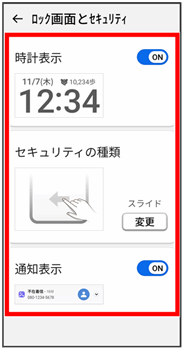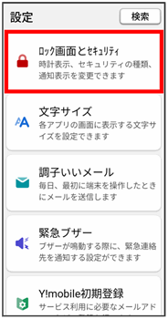 ロック画面に関する設定が行えます。設定項目は次のとおりです。