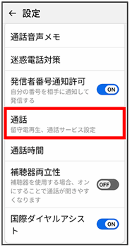 通話設定画面が表示されます。