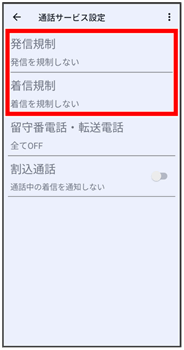 発信規制・着信規制が設定されます。
