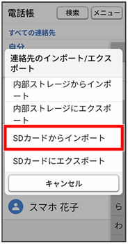 SDカードに保存(バックアップ)した電話帳データを読み込み(インポート)できます。