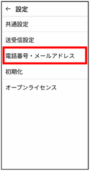 電話番号・メールアドレス画面が表示されます。
