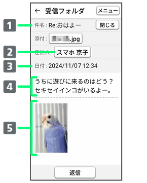 • 複数の宛先があるメールの宛先すべてに返信するときは、全員に返信をタップします。