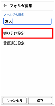 • 受信フォルダ、送信フォルダ、下書き/未送信フォルダには振り分け条件を登録できません。