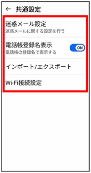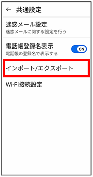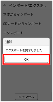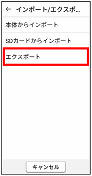 | インポート/エクスポート | メールデータを本体メモリやSDカードからインポート、エクスポートします。 | |