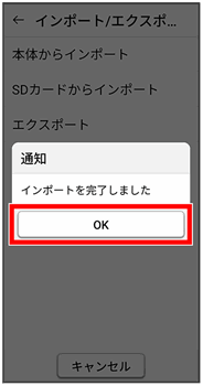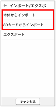 SDカードなどにエクスポートしたvMessage形式のメールデータを、本体にインポートします。