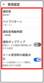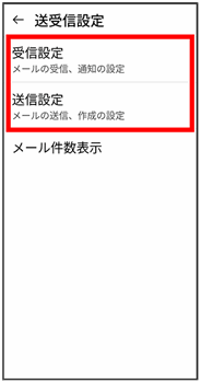 | 受信設定 | メールの受信、通知方法などを設定します。 | |