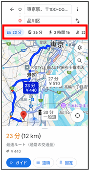 目的地までの経路の候補が表示されます。
