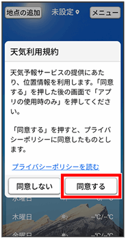 ホーム画面の「時刻/天気」部分に、現在地の天気が表示されるようにします。