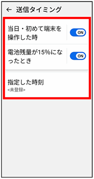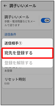 1日の最初に本機を使用したとき、登録した連絡先へメールを送信できます。あらかじめ送信相手を電話帳に登録しておいてください。