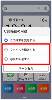 本機がパソコンに認識され、ファイルをやりとりできるようになります。