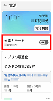 電池の使用状況を確認したり、電池の消費を軽減する設定ができます。