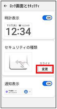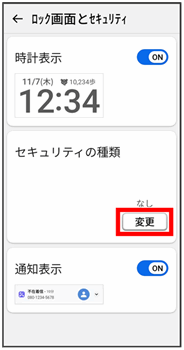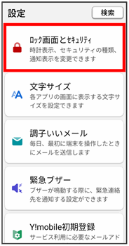| デバイスのロック解除 | ・画面ロック 画面ロックの解除方法を設定します。 ・顔認証と指紋認証によるロック解除 顔認証および指紋認証の設定をします。 指紋証設定方法について詳しくは、「指紋認証機能を利用する」を参照してください。 顔認証設定方法について詳しくは、「顔認証機能を利用する」を参照してください。 |