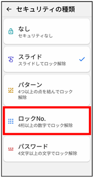 | PIN | 画面ロックを解除するための暗証番号です。詳しくは、「ロックNo.で画面ロックを解除するように設定する」を参照してください。 |