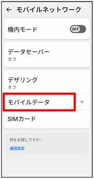 • SIMを2つ設定している場合は、モバイルデータをタップした後に、SIMを選択します。
