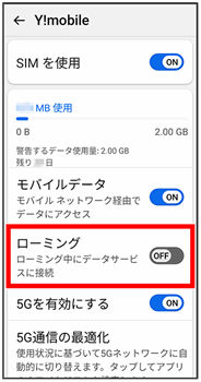 • ローミングをタップするたびに、有効(kantan-sumaho-4_icon_137)/無効(kantan-sumaho-4_icon_136)が切り替わります。