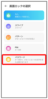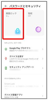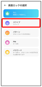- 変更前の画面ロックの解除方法がなしまたはスワイプ以外のときは、ロックを解除してください。