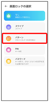 - パターンを指でなぞって画面ロックを解除するように設定する