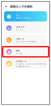 | PIN | 画面ロックを解除するための暗証番号です。詳しくは、「PINで画面ロックを解除するように設定する」を参照してください。 |