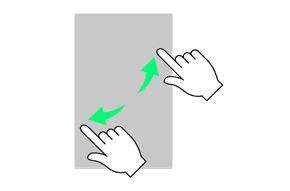 2本の指で画面に触れ、指を開いたり閉じたりします。