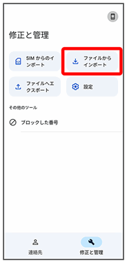 SDカードに保存(バックアップ)した電話帳データを読み込み(インポート)できます。