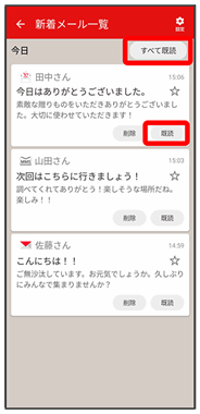 既読をタップすると対象の1通が既読に、すべて既読をタップすると1日分が既読になります。
