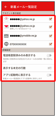 登録している複数のメールアカウントのすべての新着メールを一覧で確認することができます。