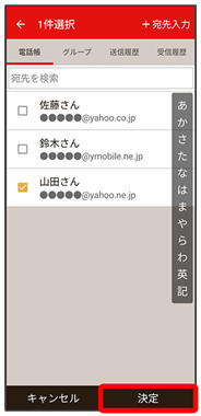 をタップすると、宛先を直接入力できます。また、入力した宛先を電話帳に登録することもできます。