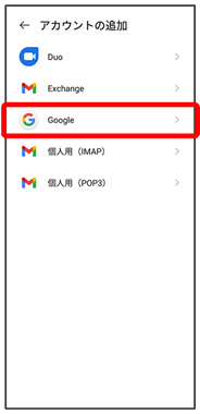 ここではGoogleのメールアカウント追加を例に説明しています。