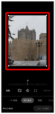 切り出す枠をピンチイン/ピンチアウト/ドラッグして、サイズ/位置を調節