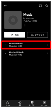 公式アルバムやミュージックビデオなど幅広い音楽コンテンツが楽しめます。ここでは内部ストレージ/SDカードに保存されている音楽を再生する操作を例に説明します。
