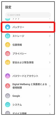 | アプリの最適化 | アプリの電池消費の最適化や、電池消費の自動制御を設定します。 | |