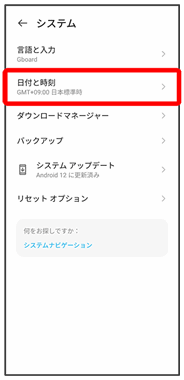言語と入力、日付と時刻、バックアップ、リセット、システム アップデートなど、システムに関して確認や設定ができます。