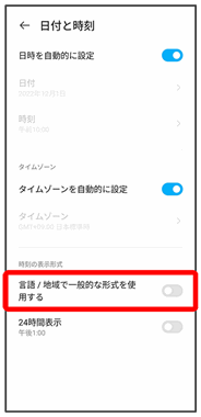 言語の設定に従って24時間表示/12時間表示が自動設定されます。