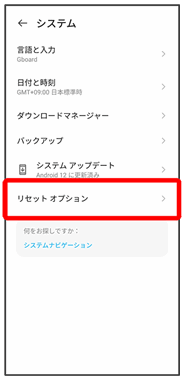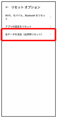 | リセット オプション | ネットワーク設定のリセットやアプリの設定のリセット、本機を初期状態にリセットができます。 |