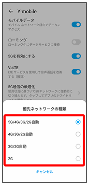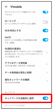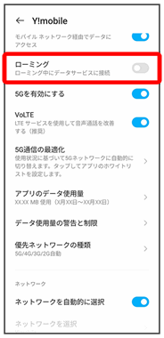 その他、必要に応じて通信方式、データローミングの設定を変更してください。